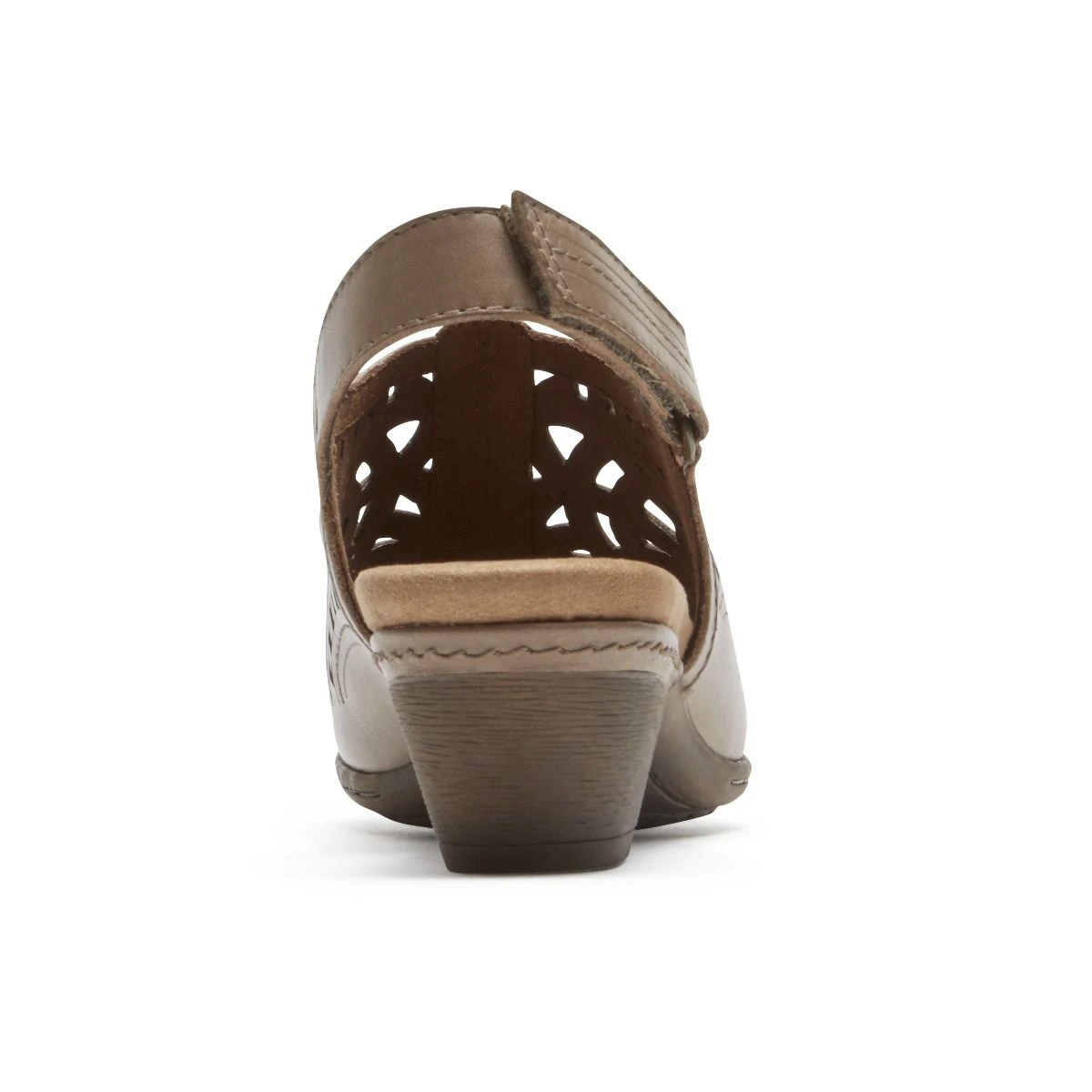 Your feet will look on-point all season with the full-grain leather and cut-out details of our Cobb Hill Abbott High Vamp Sling Sandals. A heel strap with adjustable buckle closure at the ankle ensures a secure fit. Inside, an EVA footbed ensures cushioning, while a stability shank embedded into the midsole supports the arch to create a smoother gait. A TR rubber outsole provides the right amount of grip for wherever your summer adventures take you.