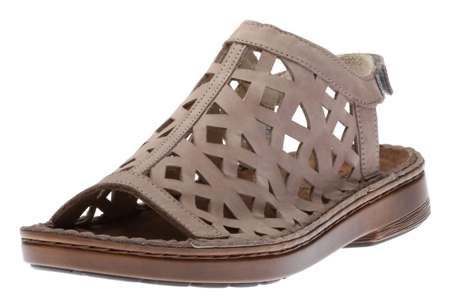 The Amadora from Naot’s Utopia Collection is the perfect sandal for whatever you’re wearing this summer. This slingback open toe sandal features a nubuck leather upper with intricate perforated design, an adjustable hook and loop back strap with a Velcro closure and a removable anatomic cork and latex footbed wrapped in pampering suede that molds to the shape of the foot with wear. The sandal also features a polyurethane sole which is extremely lightweight and durable. This model is designed to accommodate a wide foot.