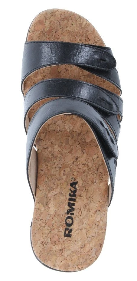 The Calgary 01 wedge sandal from Romika is the perfect slide wedge sandal to compliment any wardrobe and would also make a great house shoe. Featuring a vegan leather upper, this sandal features adjustable straps with Velcro closure for a secure and comfortable fit, a cushioned footbed and a polyurethane outsole. You will want to put the Calgary 01 on your must-have list for this season!