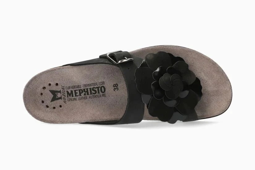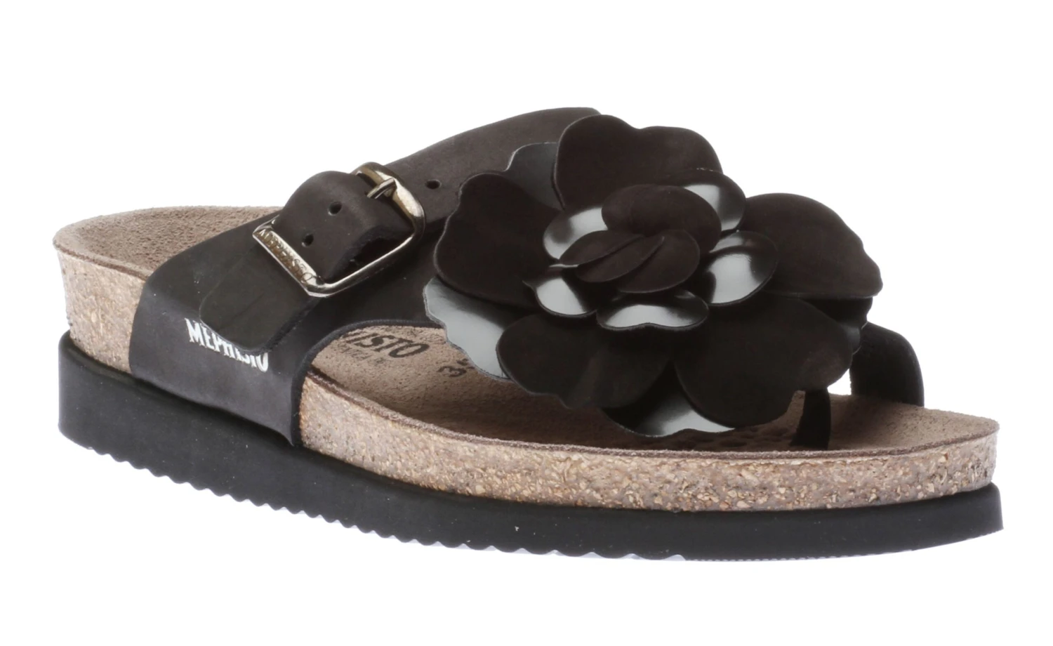 Make a statement with the beautiful Helen Flower thong sandal by Mephisto! Ultra-comfortable with its anatomic correct footbed, cork midsole and multi-layered footbed integrated with Soft-Air Technology to reduce shock, it’s hard for any other sandal to compete. An adjustable instep strap ensures a secure fit, a thin toe post helps eliminate irritation and an EVA outsole absorbs shock and reduces stress put on your feet, legs and back. Try these Mephisto sandals and never look back!