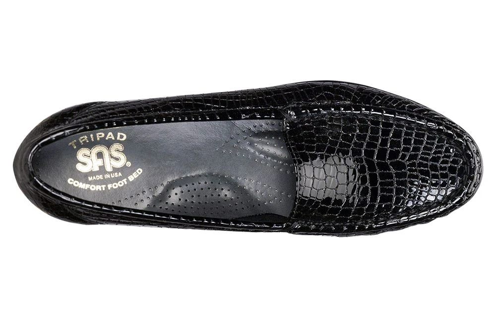 For those who like to keep it simple, here’s a Simplify moccasin loafer with timeless, elegant style. Soft leather with padded lining wraps completely around the foot for a plush feel. A removable cushioned footbed and a lightweight shock-absorbing sole supports you with every step. Designed to follow the shape and natural arches of your foot, Simplify utilizes a comfortable Tripad-Moc™ Technology for extra comfort and support. Simplify provides extra toe room to allow your foot to properly set when walking as well as a soft shock-reducing polyurethane sole for a lighter, cushioned step.